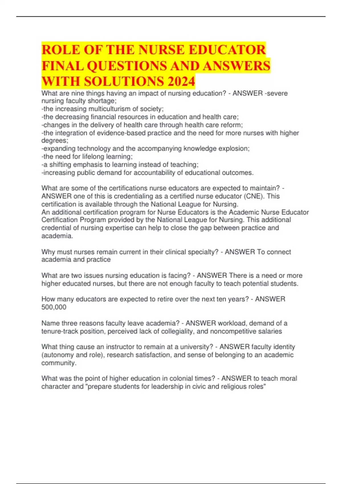 ROLE OF THE NURSE EDUCATOR FINAL QUESTIONS AND ANSWERS WITH SOLUTIONS 2024