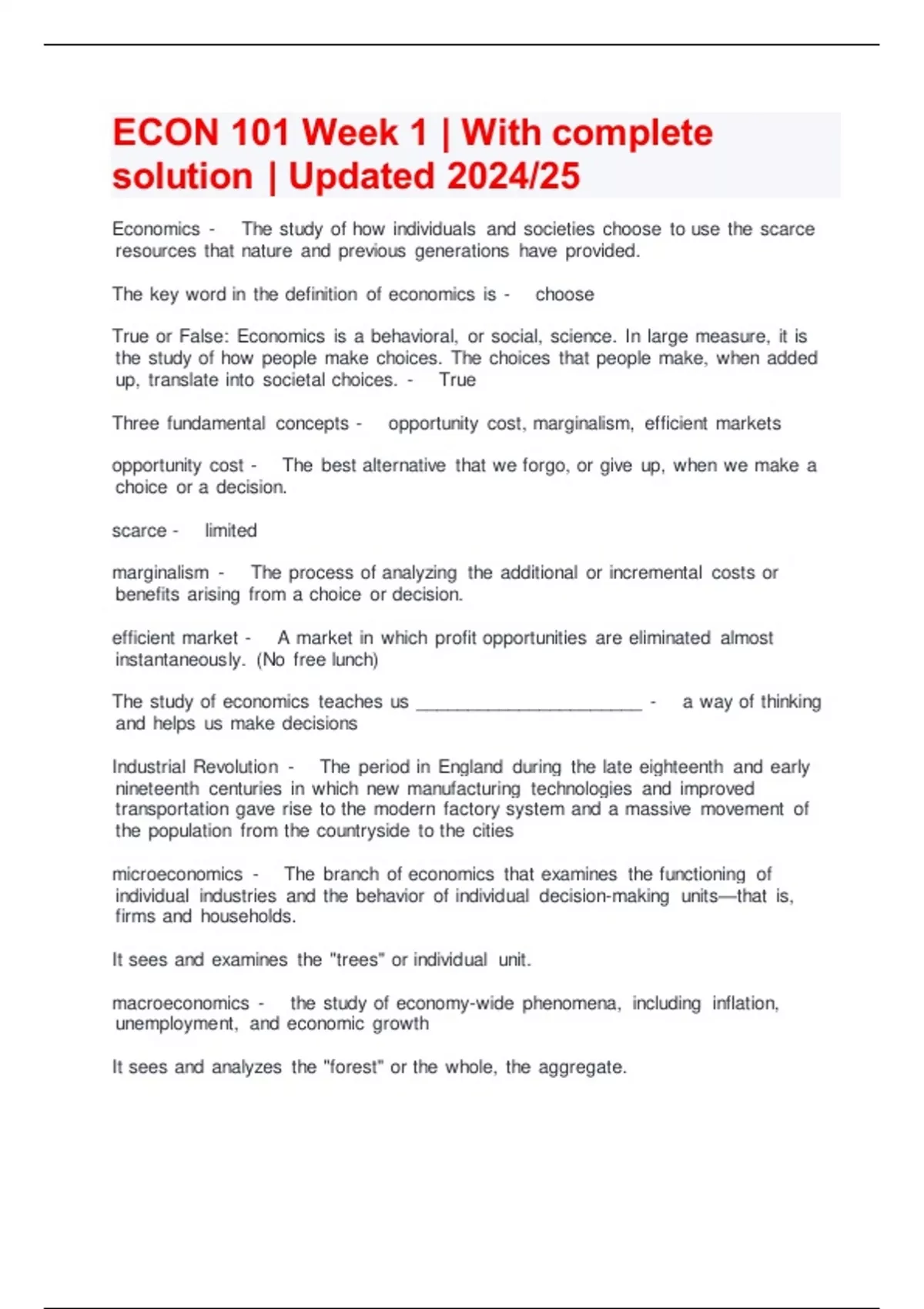 ECON 101 Week 1 | With complete solution | Updated 2024/25