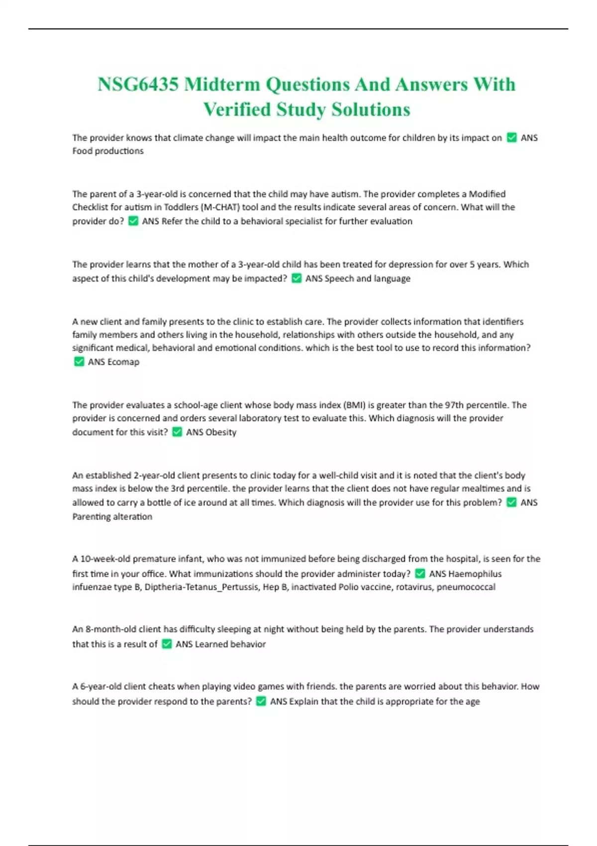 NSG6435 Midterm Questions And Answers With Verified Study Solutions