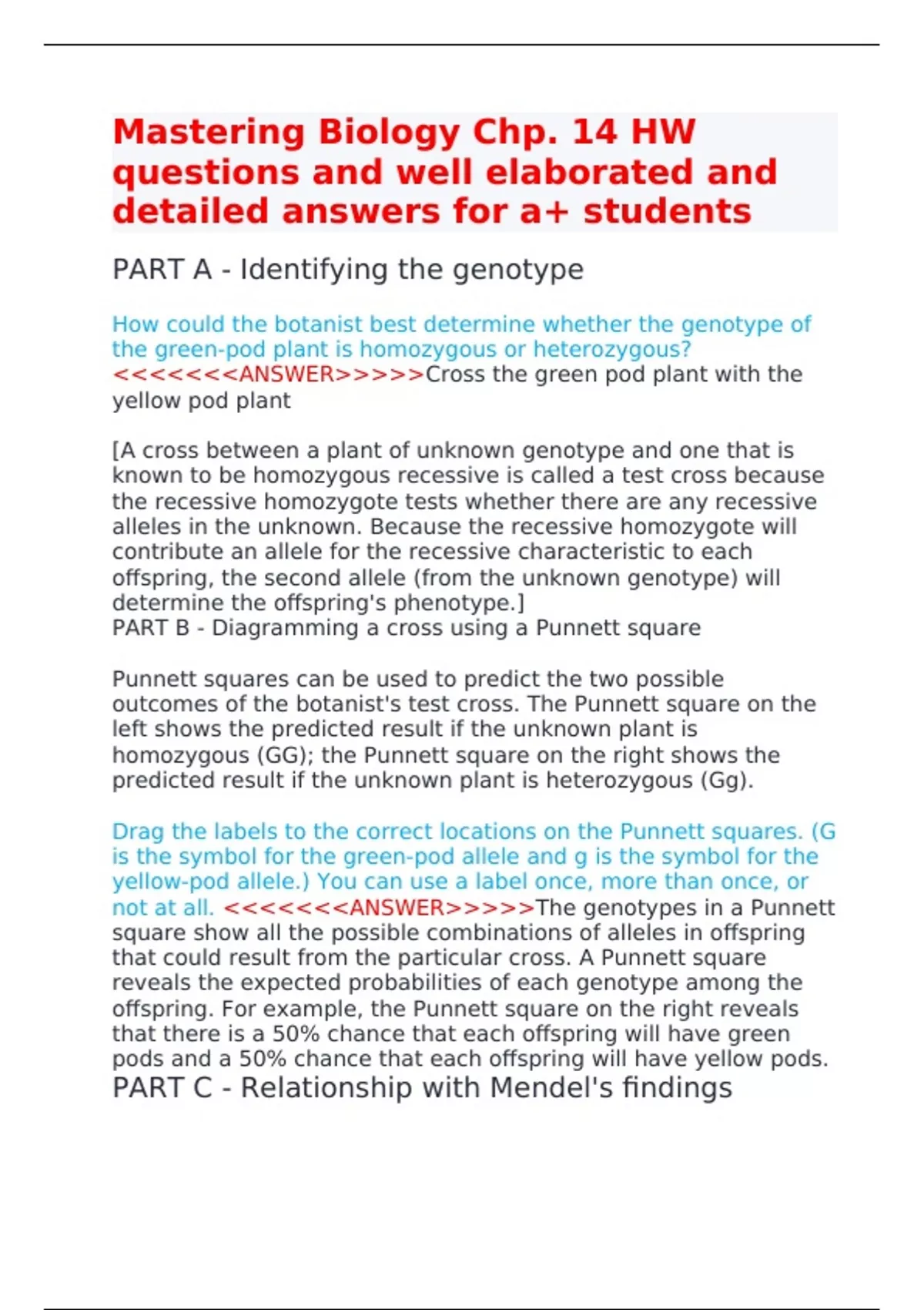 Mastering Biology Chp. 14 HW questions and well elaborated and detailed answers for A+ students Mastering Biology Chp. 14 HW questions and well elaborated and detailed answers for A+ students