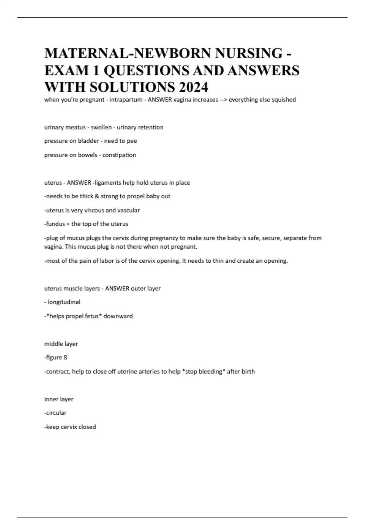 MATERNAL-NEWBORN NURSING - EXAM 1 QUESTIONS AND ANSWERS WITH SOLUTIONS 2024