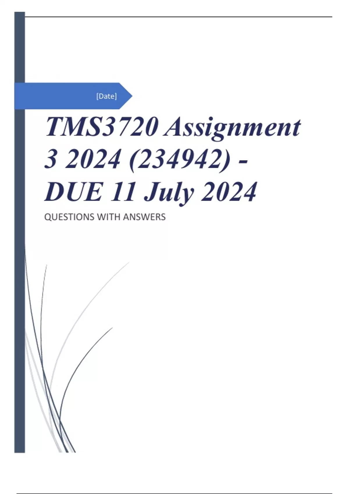 TMS3720 Assignment 3 2024 (234942) - DUE 11 July 2024 QUESTIONS WITH COMPLETE ANSWERS