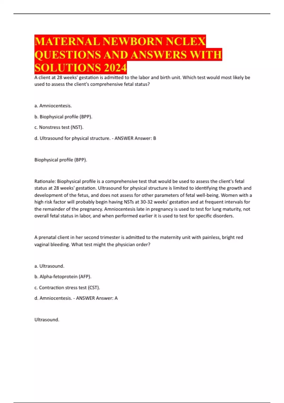 MATERNAL NEWBORN NCLEX QUESTIONS AND ANSWERS WITH SOLUTIONS 2024