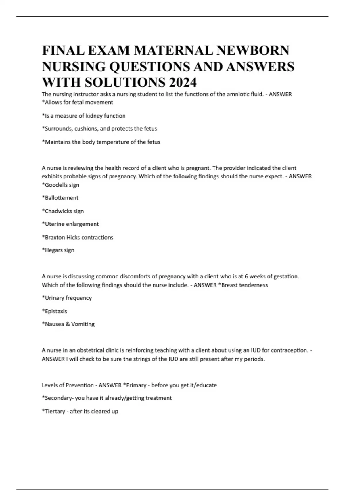 FINAL EXAM MATERNAL NEWBORN NURSING QUESTIONS AND ANSWERS WITH SOLUTIONS 2024