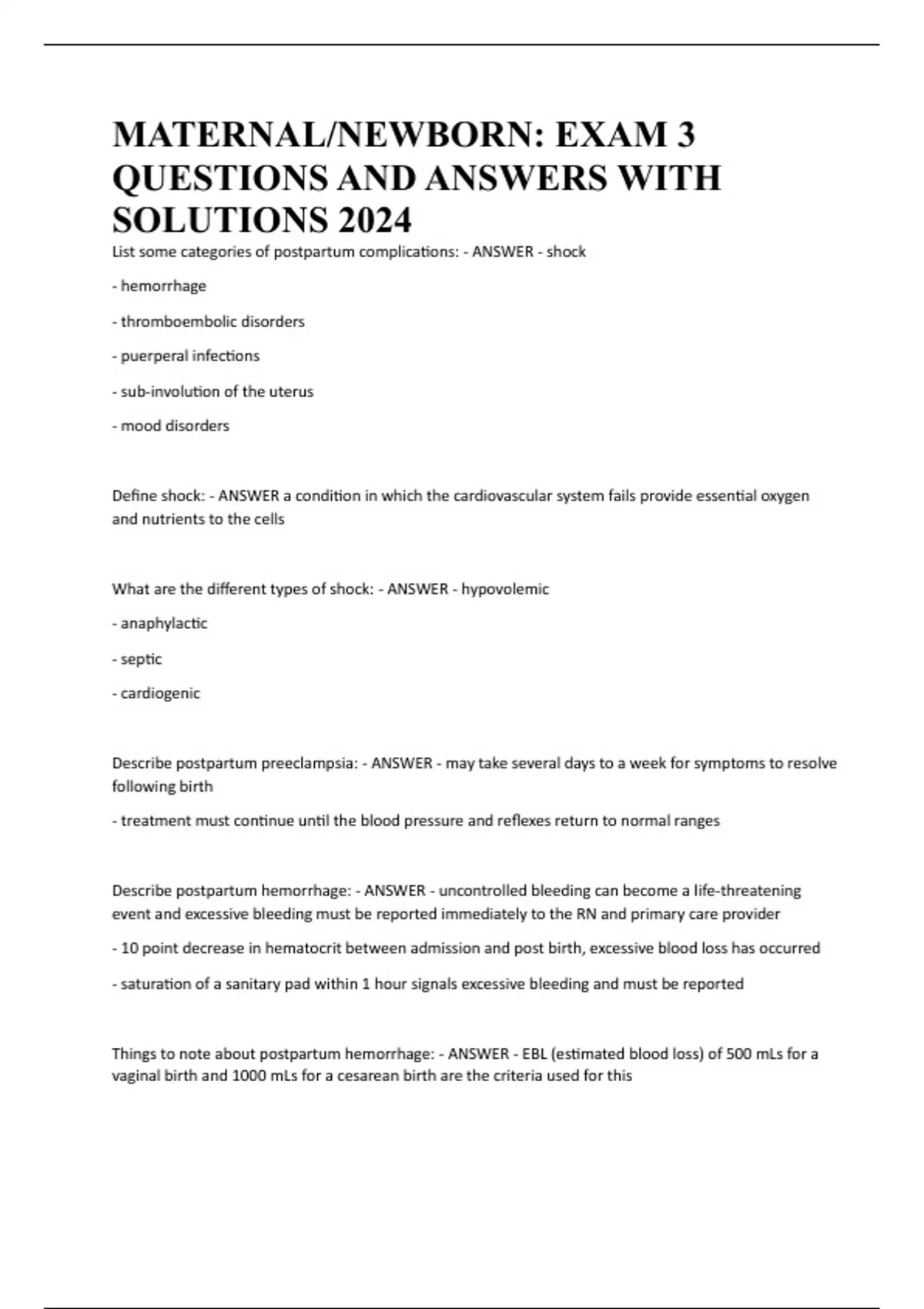 MATERNAL/NEWBORN: EXAM 3 QUESTIONS AND ANSWERS WITH SOLUTIONS 2024