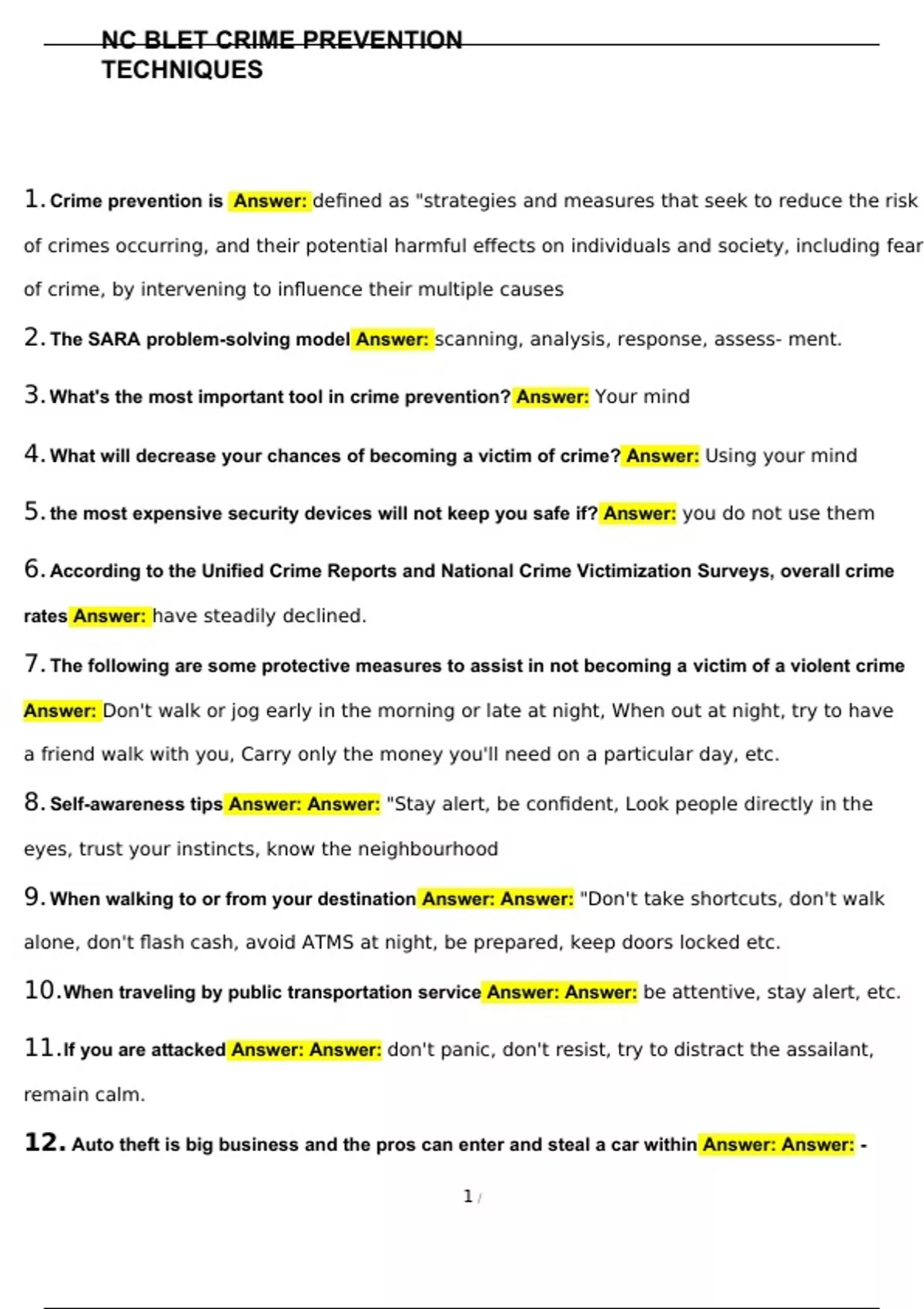 NC BLET Crime Prevention Techniques Exam Questions and Complete Solutions Graded A+.