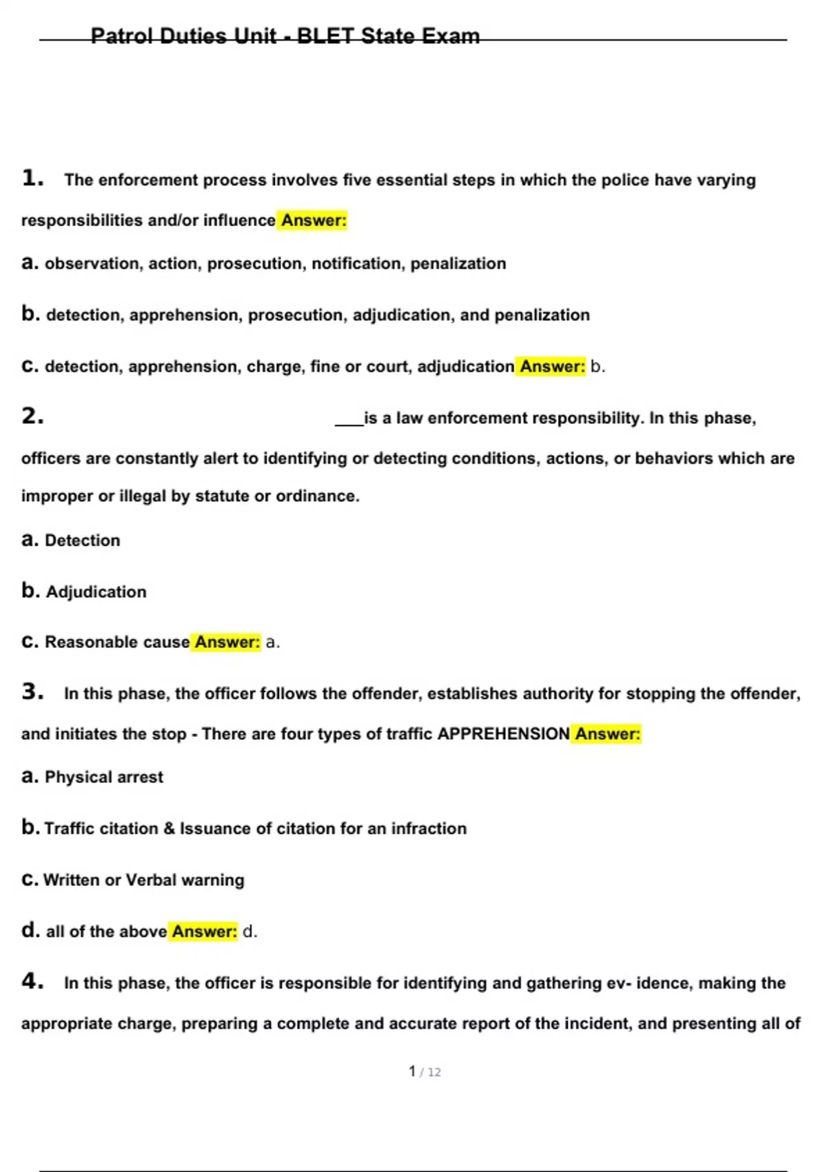 Patrol Duties Unit - BLET State Exam Questions and Complete Solutions Graded A+