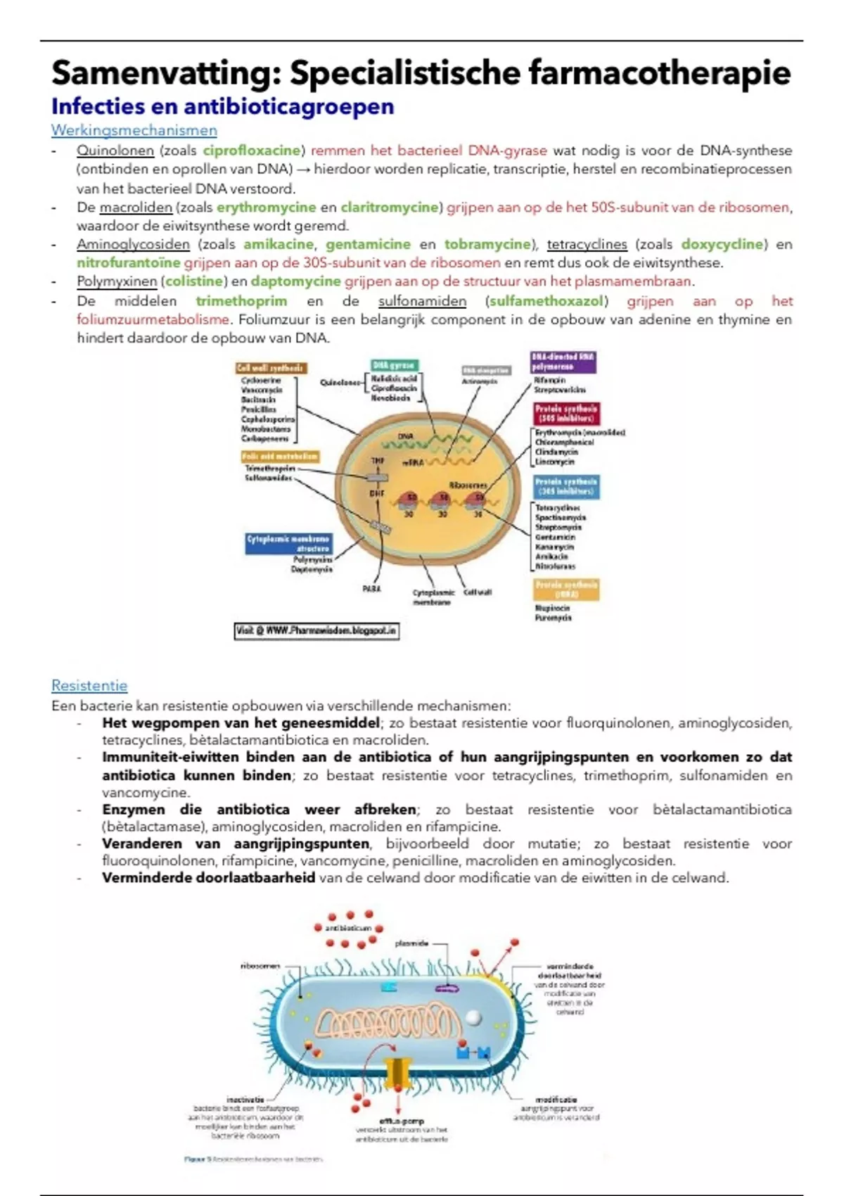 Alles omvattende samenvatting van de collegeaantekeningen van specialistische farmacotherapie, met herhaling gebaseerd op de collegeaantekeningen van het vak 'Algemene farmacotherapie'.