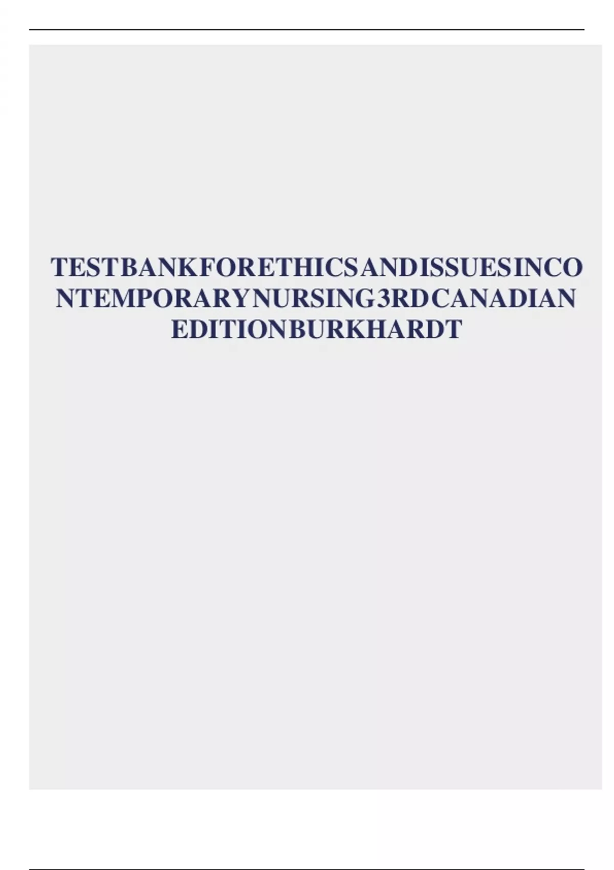 TEST BANK FOR ETHICS AND ISSUES IN CONTEMPORARY NURSING 3RD CANADIAN EDITION BURKHARDT