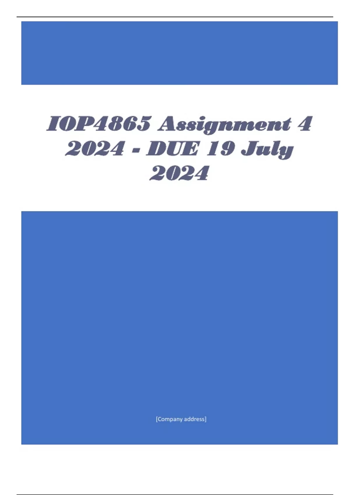 , IOP4865 Assignment 4 2024 - DUE 19 July 2024