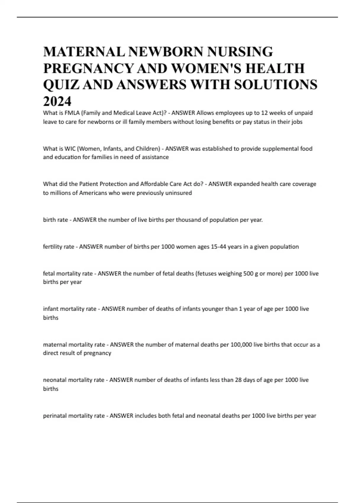 MATERNAL NEWBORN NURSING PREGNANCY AND WOMEN'S HEALTH QUIZ AND ANSWERS WITH SOLUTIONS 2024
