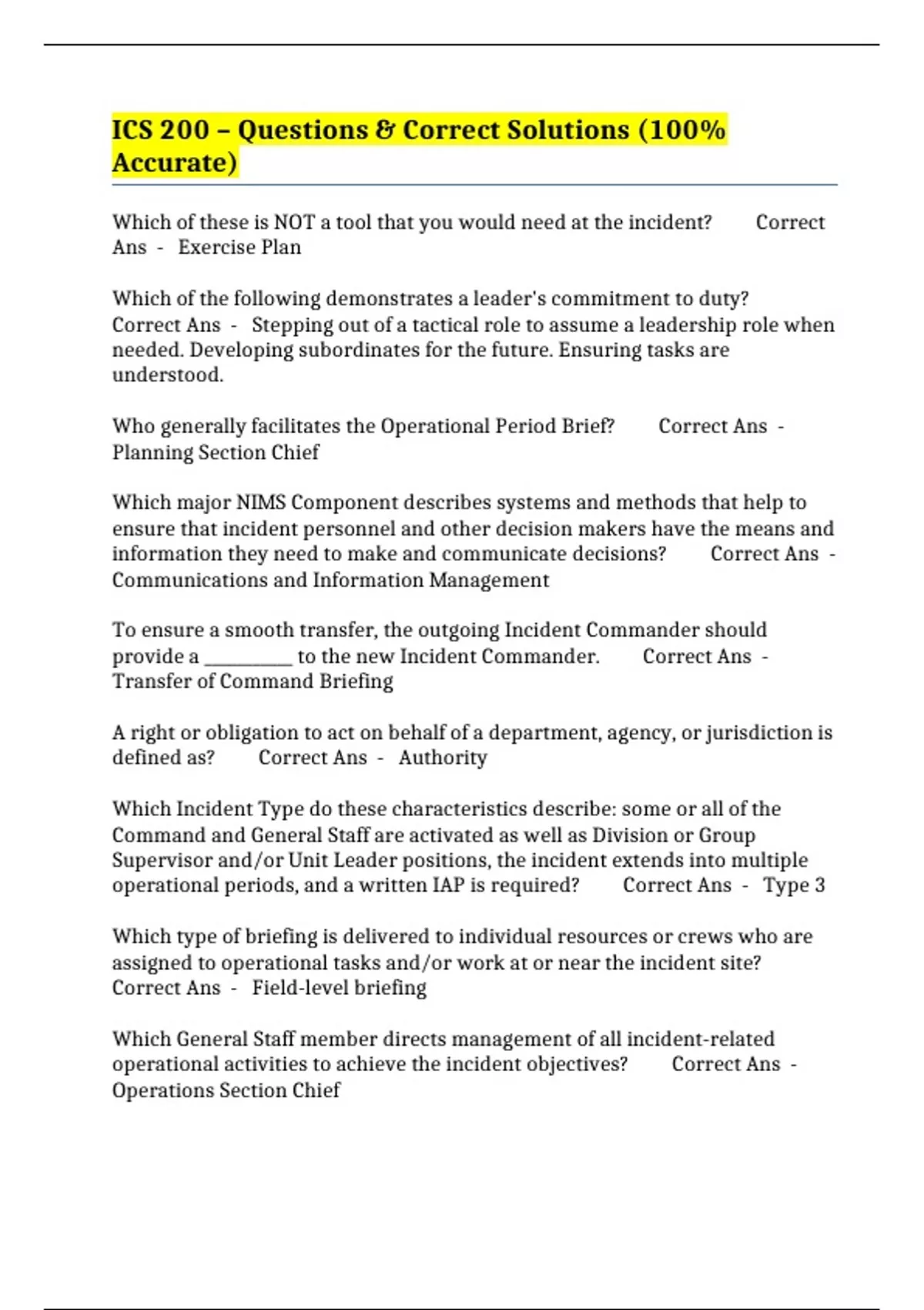 ics 200 questions correct solutions 100 accu
