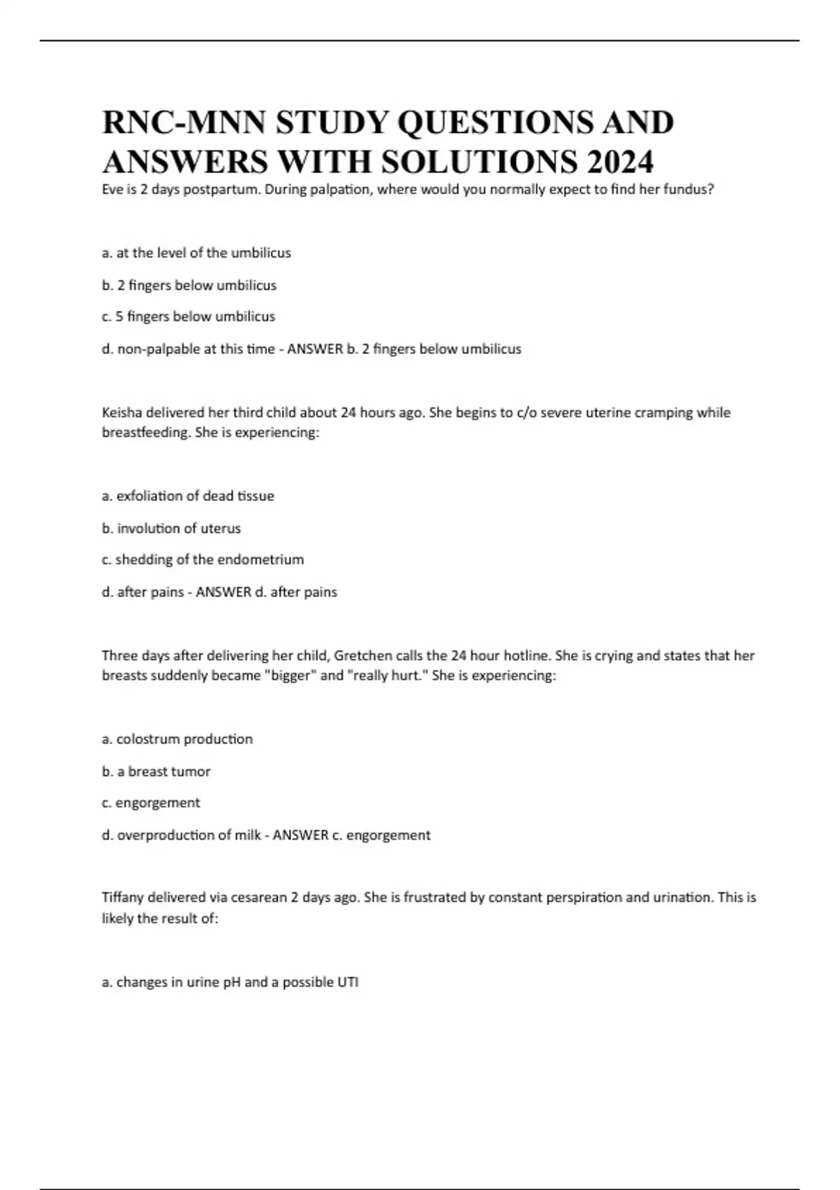 RNC-MNN STUDY QUESTIONS AND ANSWERS WITH SOLUTIONS 2024