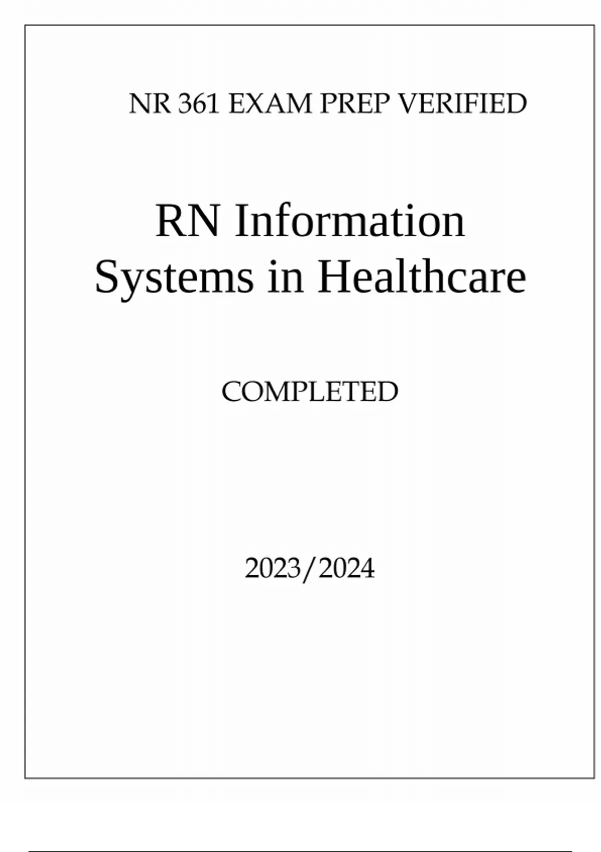NR 361 EXAM PREP VERIFIED RN Information Systems in Healthcare. LATEST UPDATED VERSION 2024.