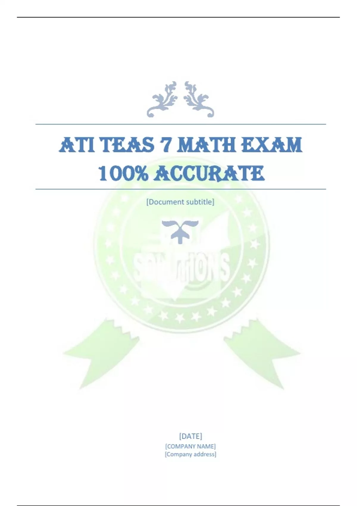 ATI TEAS 7 MATH EXAM 100% ACCURATE [Document subtitle] [DATE] [COMPANY NAME] [Company address] 1. If a box of 35 syringes costs $560.00. Which of the following is the cost of the syringes? o $16.00 o $8.00 o $32.00 o $15.00 2. A couple dining at a restaurant receives a bill of $38.40. They wish to leave a 15% gratuity. Which of the following is the estimated gratuity? o $5.00 o $6.00 o $ 7.00 o $4.00 3. A student performs the following estimations o 24+190=210 o 151+319=490 o 974+1022=1990 Based on the estimations, which of the following is the students estimate of 452+5017? o 5450 o 5400 o 5470 o 5500 4. 2(4x + 3) = 7x +5 Solve the equation above for x. which of the following is correct