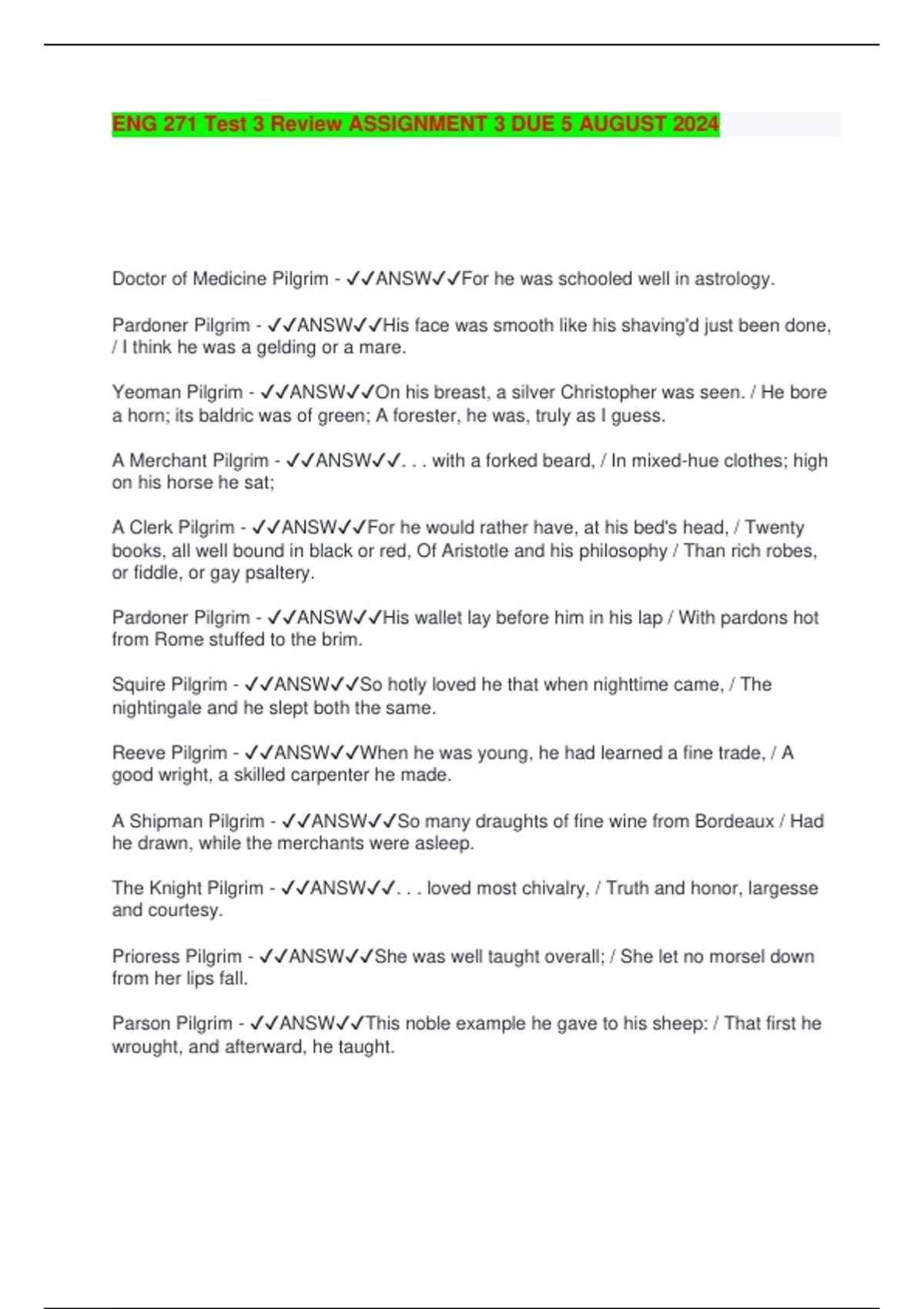 ENG 271 Test 3 Review ASSIGNMENT 3 DUE 5 AUGUST 2024