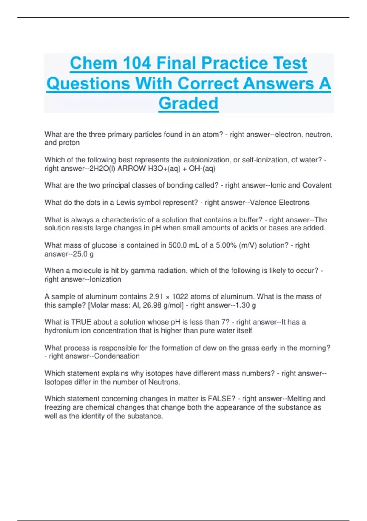 Chem 104 Final Practice Test Questions With Correct Answers A Graded