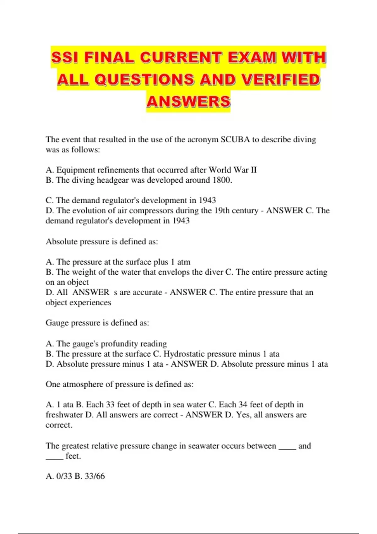 SSI FINAL CURRENT EXAM WITH ALL QUESTIONS AND VERIFIED ANSWERS