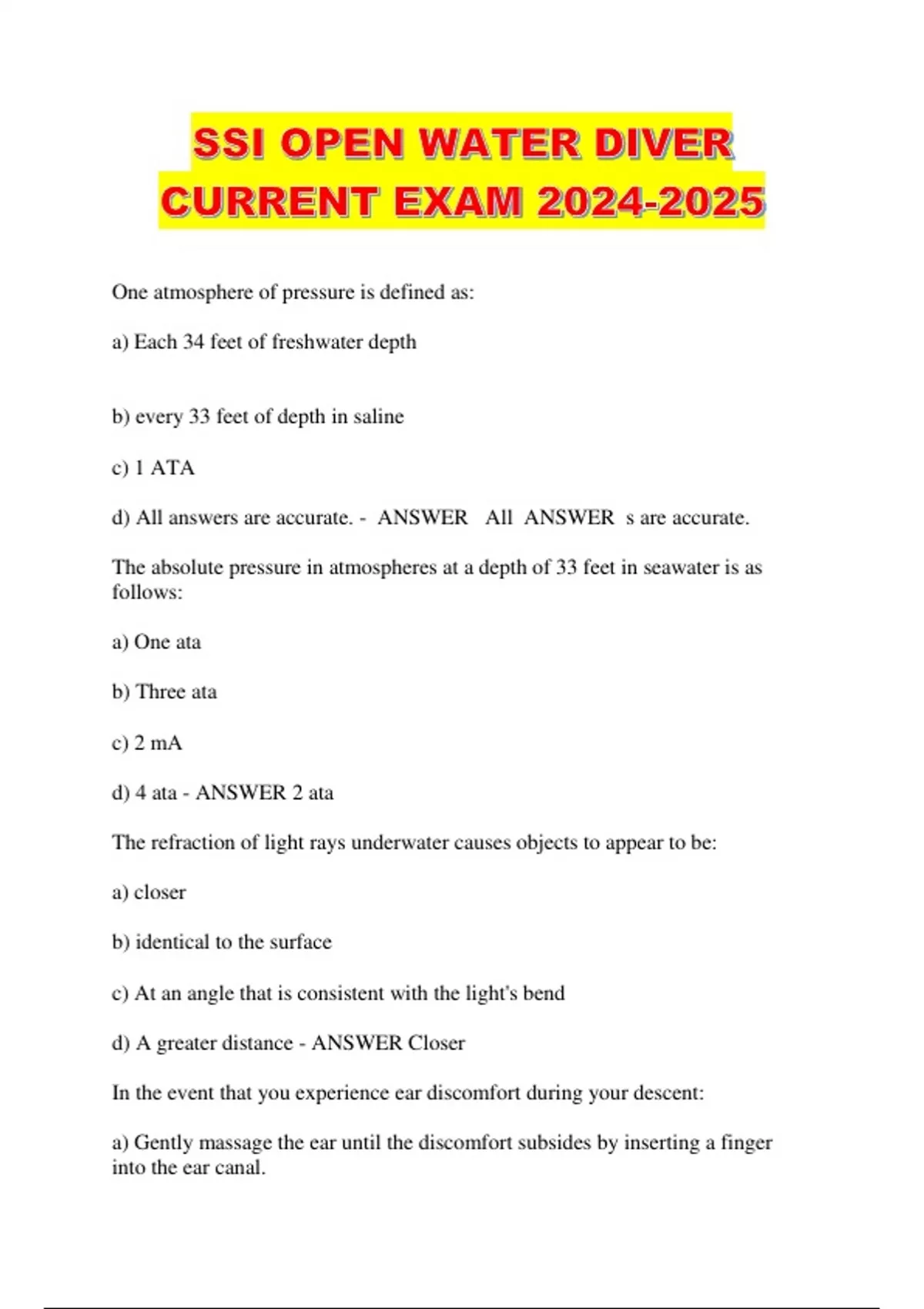 SSI OPEN WATER DIVER CURRENT EXAM ...
