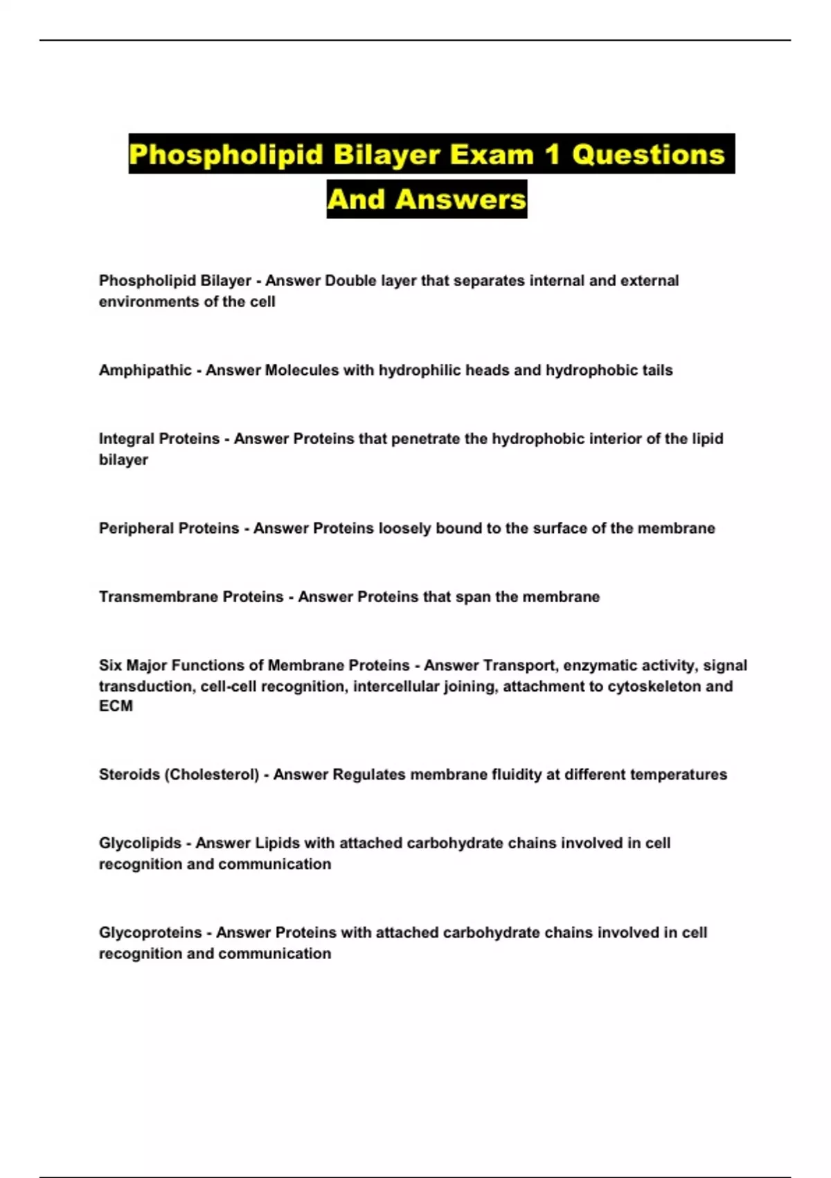 Phospholipid Bilayer Exam 1 Questions And Answers...