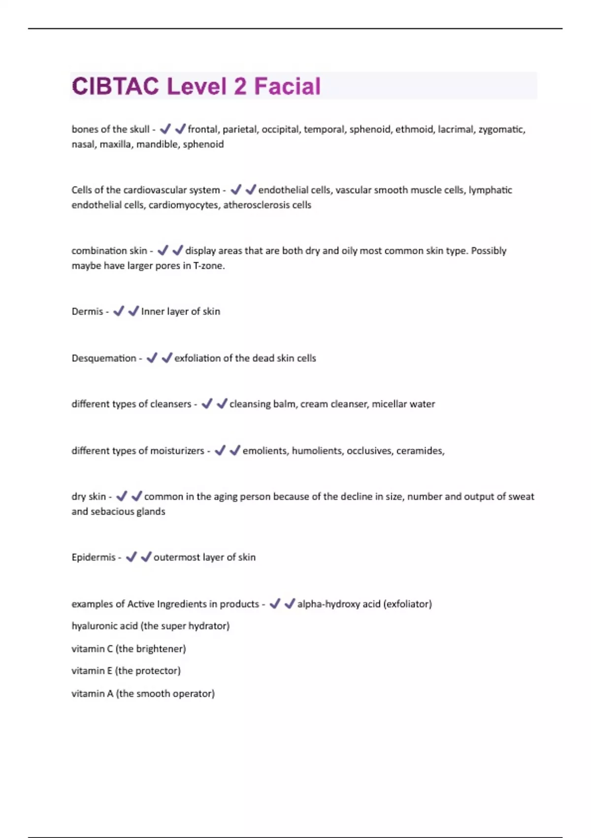 CIBTAC Level 2 Facial Questions And Answers Graded A+