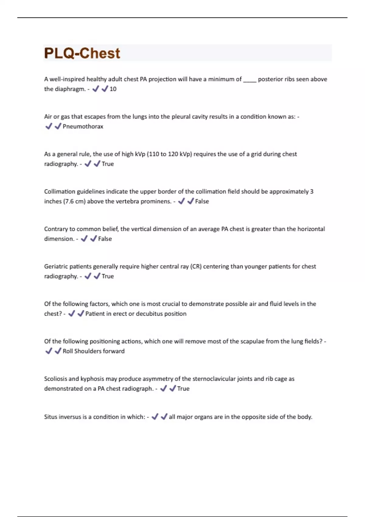 PLQ-Chest Questions And Answers Graded A+
