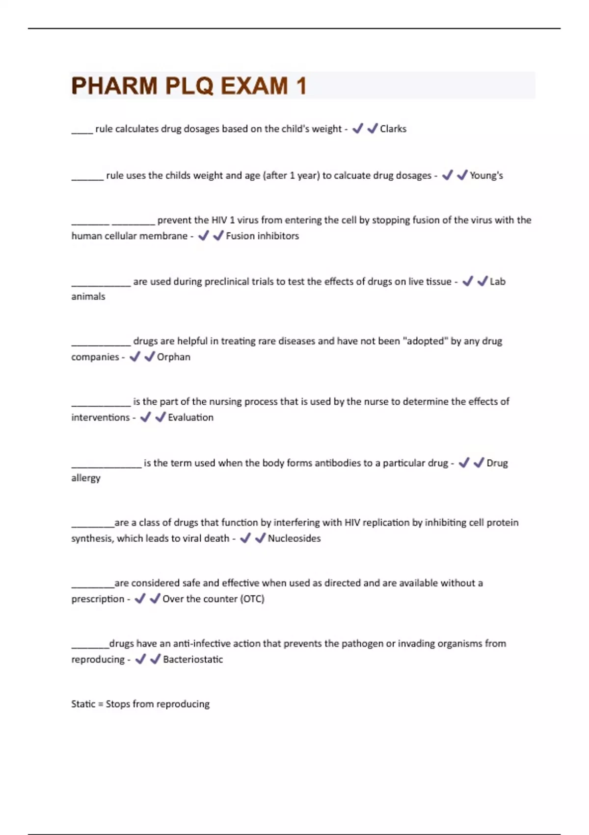 PHARM PLQ EXAM 1 QUESTIONS AND ANSWERS RATED 100% CORRECT