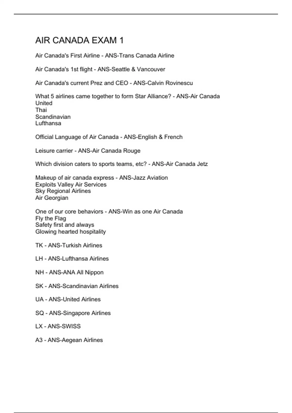 AIR CANADA EXAM 1