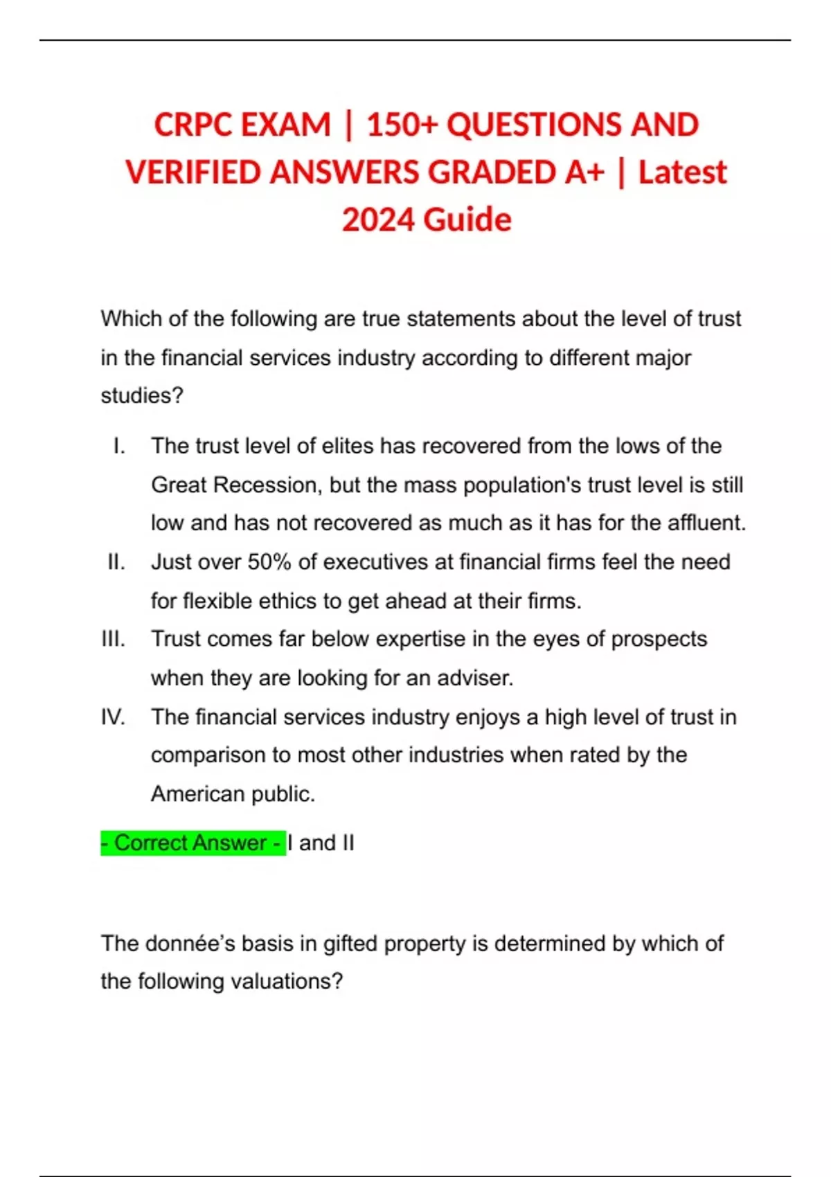CRPC EXAM | 150+ QUESTIONS AND VERIFIED ANSWERS GRADED A+ | Latest 2024 Guide