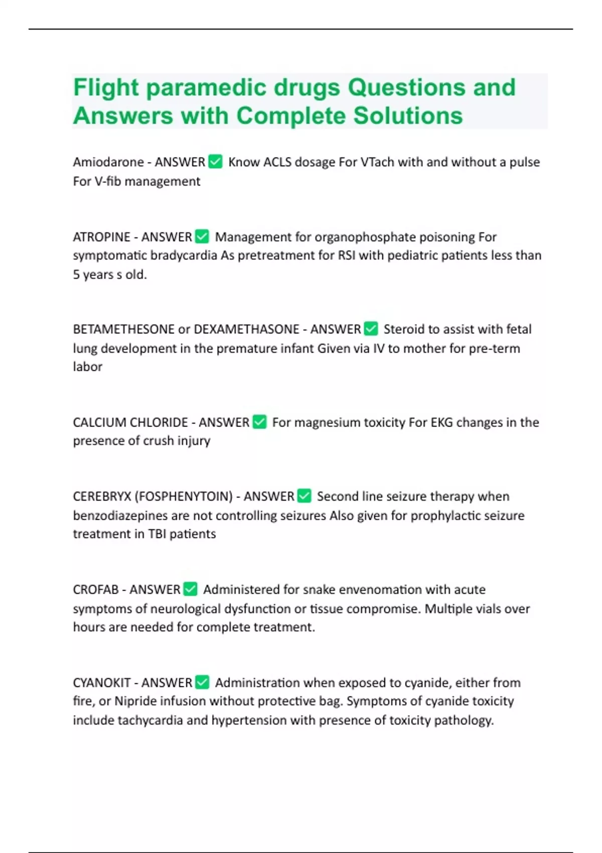 Flight paramedic drugs Questions and Answers with Complete Solutions.