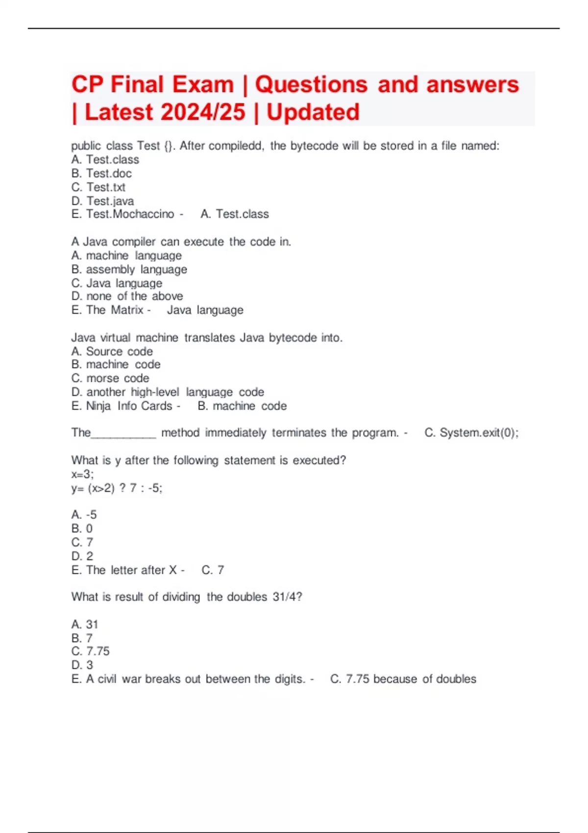 CP Final Exam | Questions and answers | Latest 2024/25 | Updated