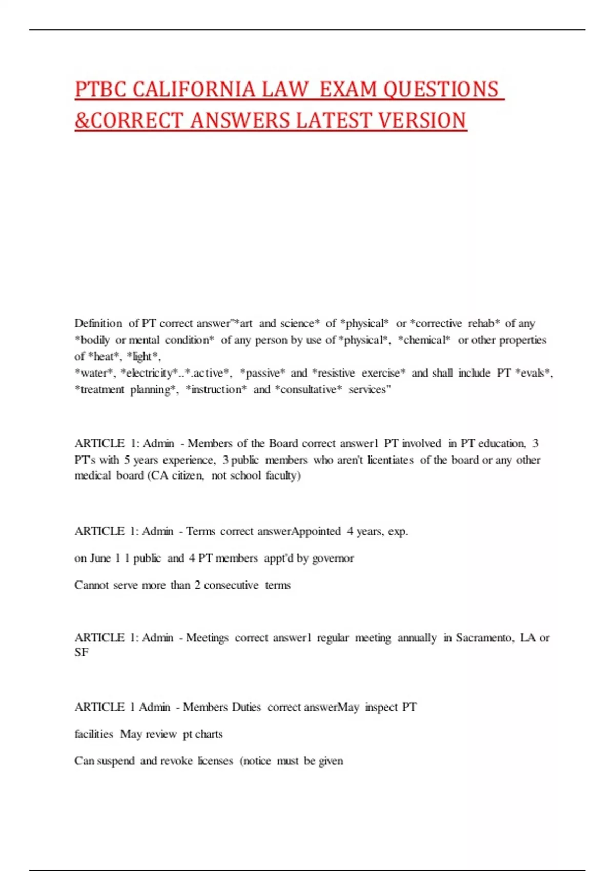 PTBC CALIFORNIA LAW EXAM QUESTIONS &CORRECT ANSWERS LATEST VERSION