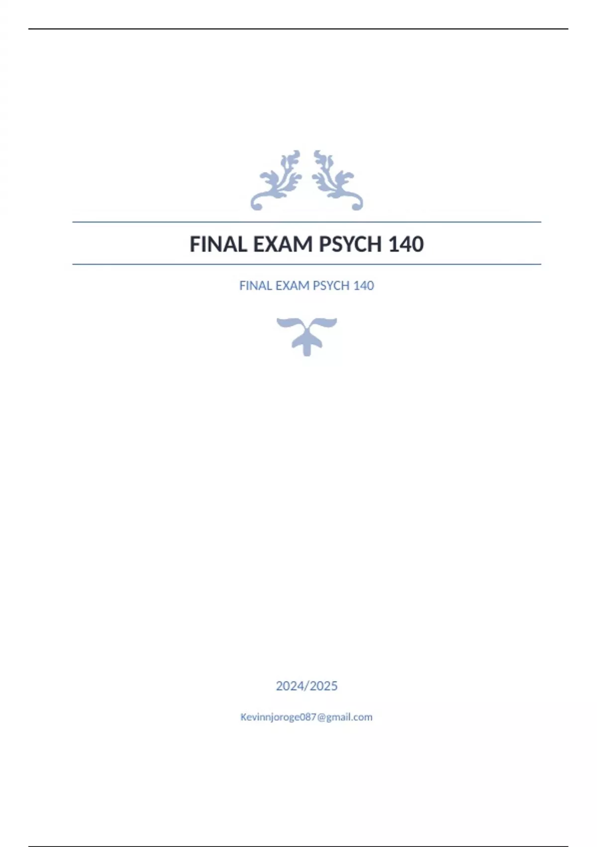 FINAL EXAM PSYCH 140 questions and answers verified 2024
