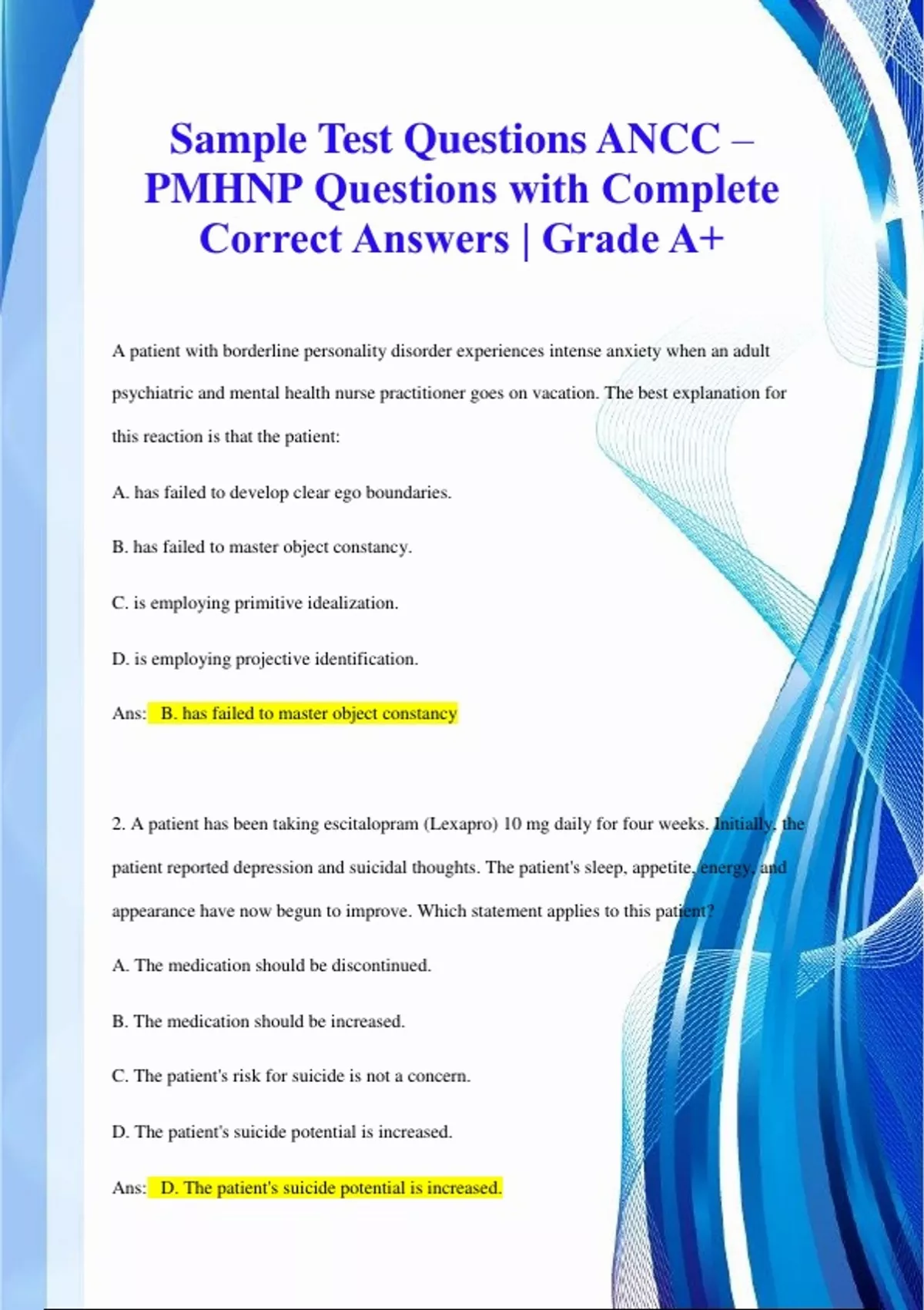 Sample Test Questions ANCC – PMHNP Questions with Complete Correct Answers | Grade A+