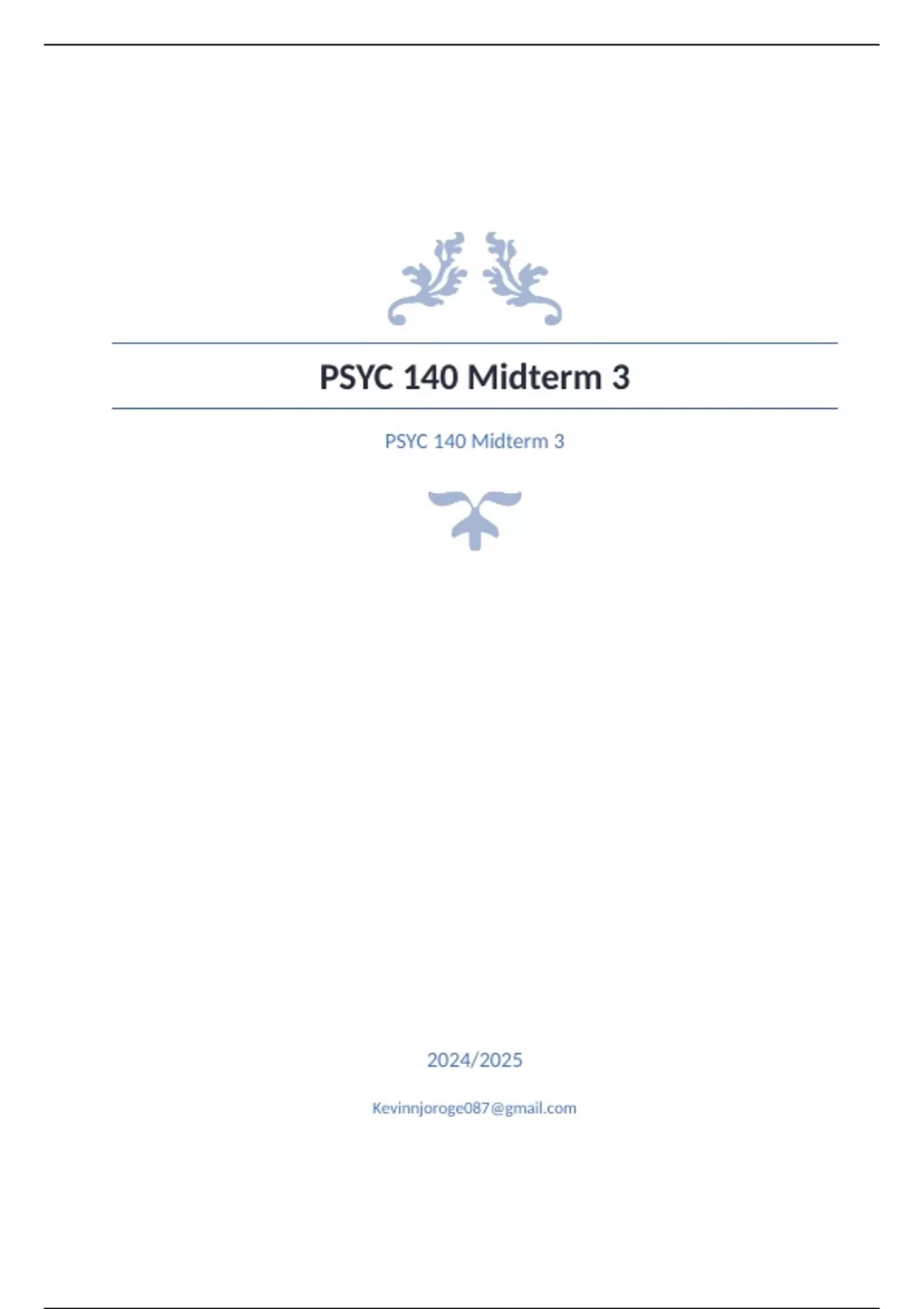 PSYC 140 Midterm 3. questions and answers already solved 2024