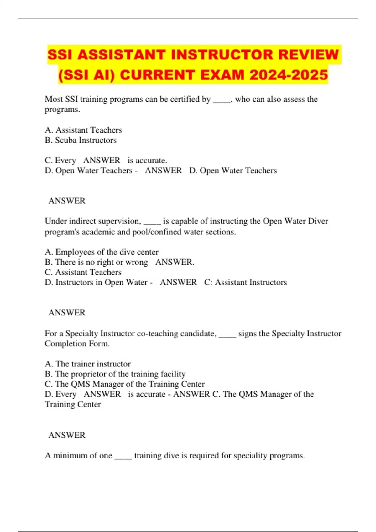 SSI ASSISTANT INSTRUCTOR REVIEW (SSI AI) CURRENT EXAM ...