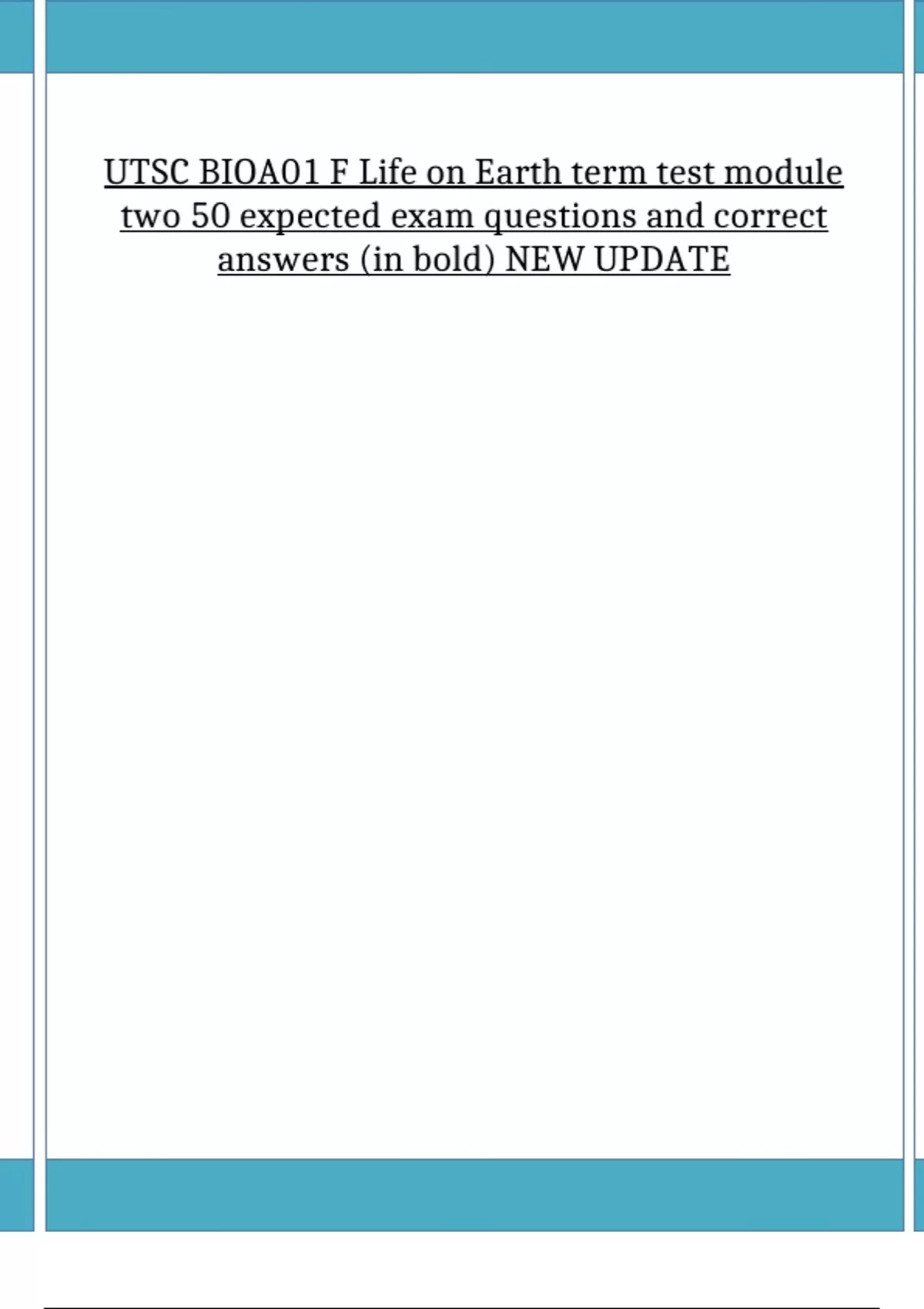 UTSC BIOA01 Life on Earth term test module two |50 expected exam questions and correct answers (in bold) |NEW UPDATE