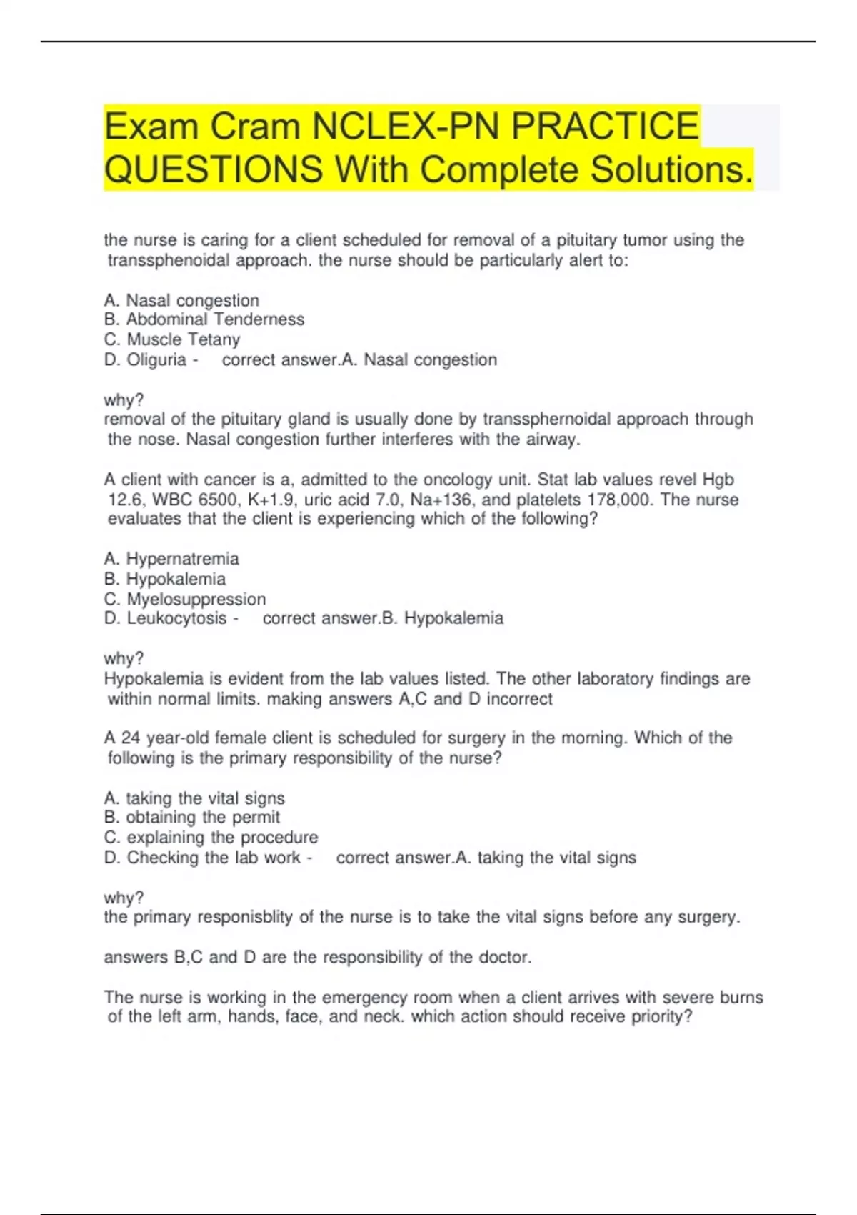 Exam Cram NCLEX-PN PRACTICE QUESTIONS With Complete Solutions.