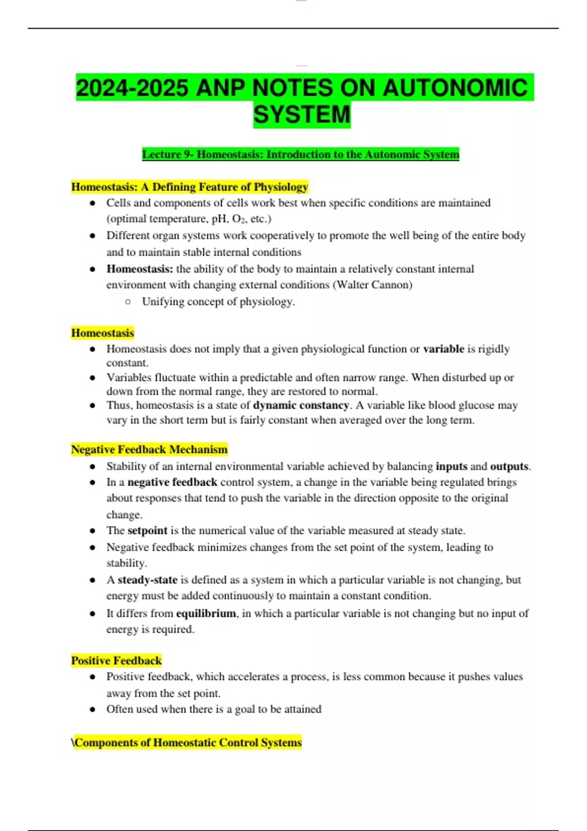 Lecture 9- Homeostasis: Introduction to the Autonomic System