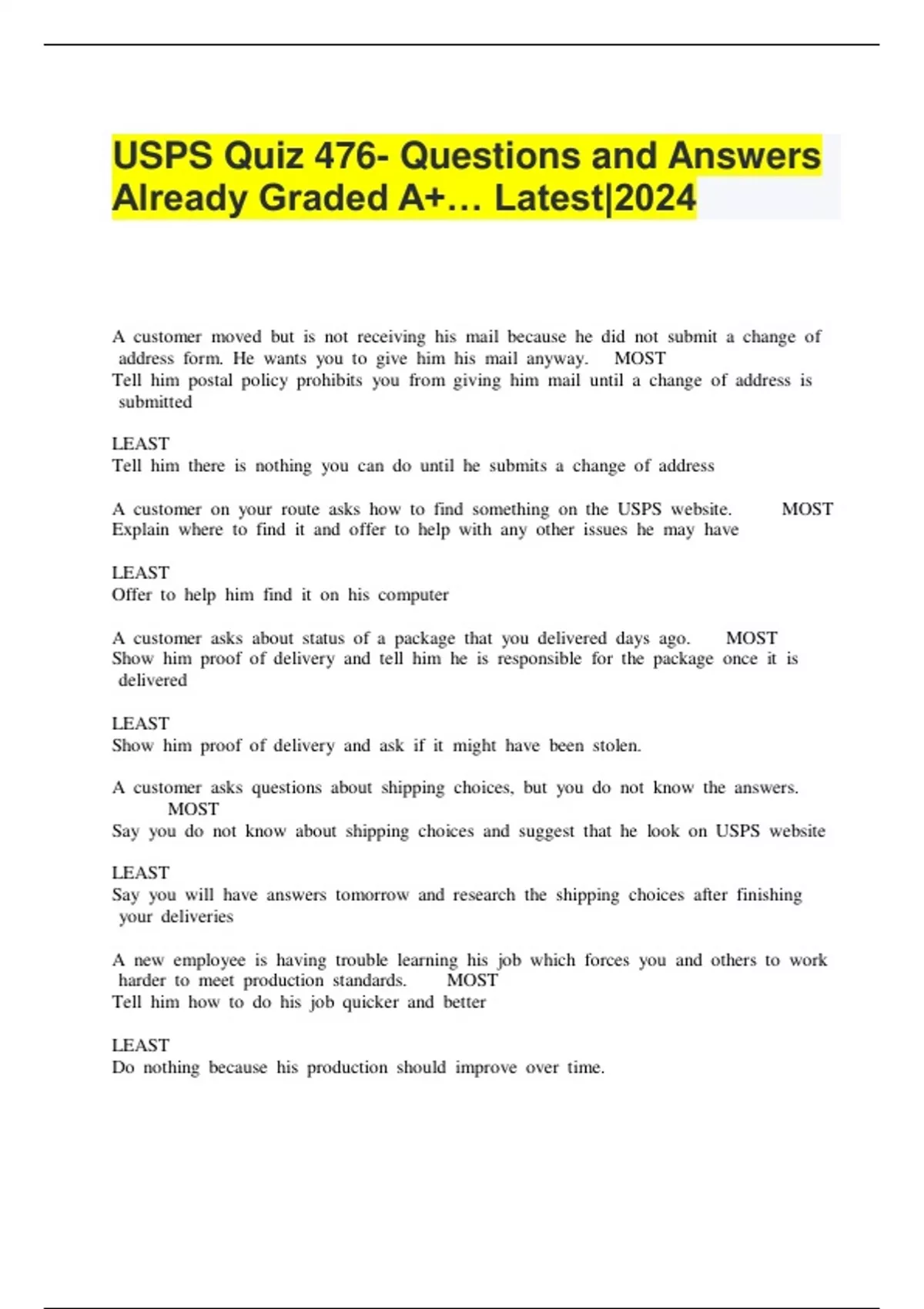 USPS Quiz 476- Questions and Answers Already Graded A+… Latest|2024