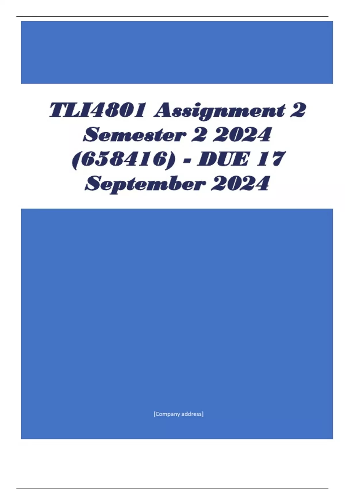 , TLI4801 Assignment 2 Semester 2 2024 (658416) - DUE 17 September 2024