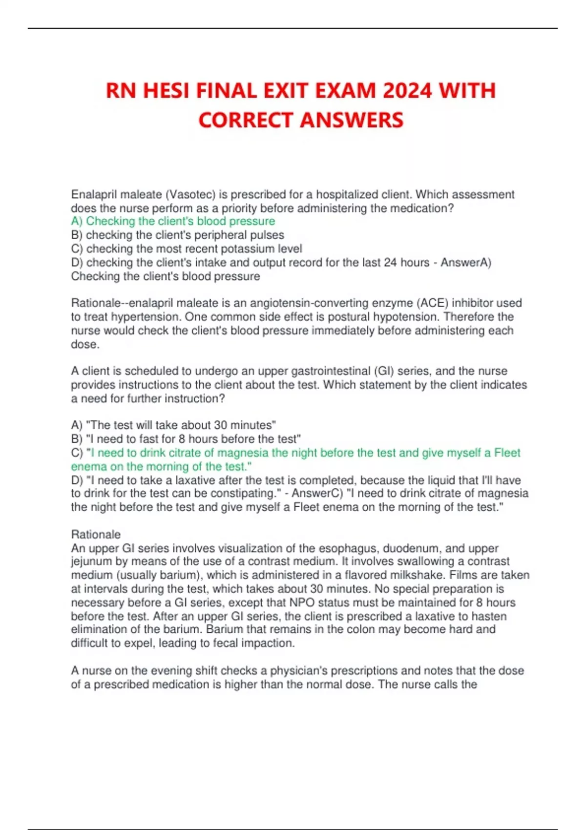 rn hesi final exit exam 2024 with correct answers