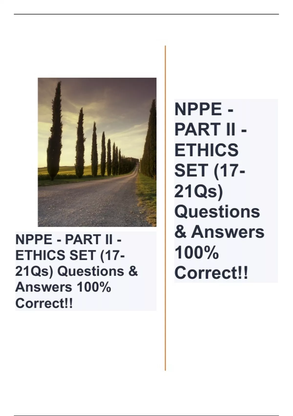 NPPE - PART II - ETHICS SET (17-21Qs) Questions & Answers 100% Correct!!