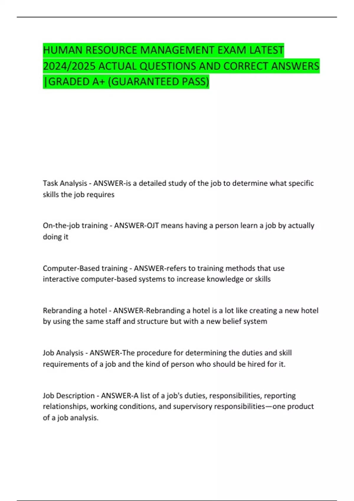HUMAN RESOURCE MANAGEMENT EXAM LATEST 2024