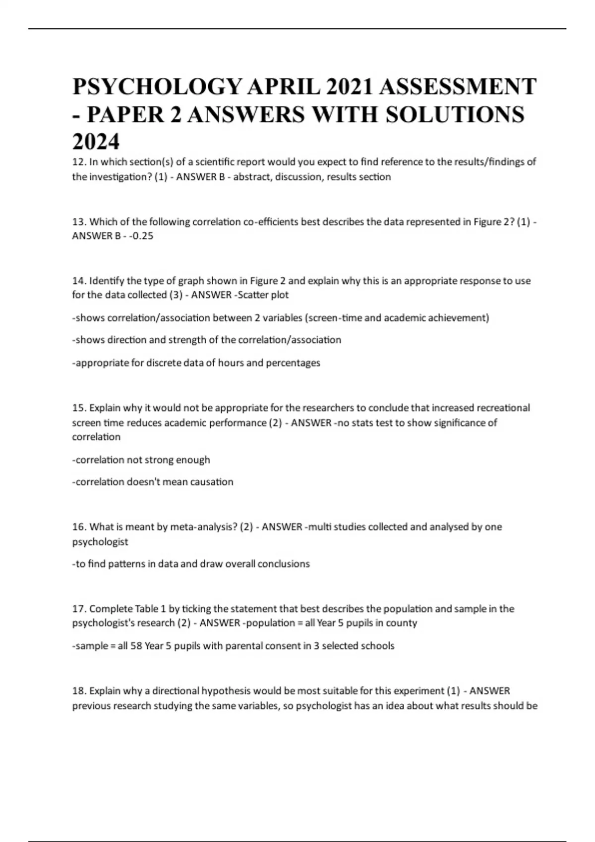 PSYCHOLOGY APRIL 2021 ASSESSMENT - PAPER 2 ANSWERS WITH SOLUTIONS 2024
