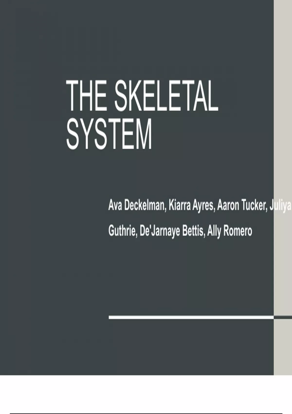 The included document is the project covered in anatomy and physiology I. In the presentation we explained the skeletal system and had a fun game/quiz at the end. I received a 100% in the class and on this assignment.