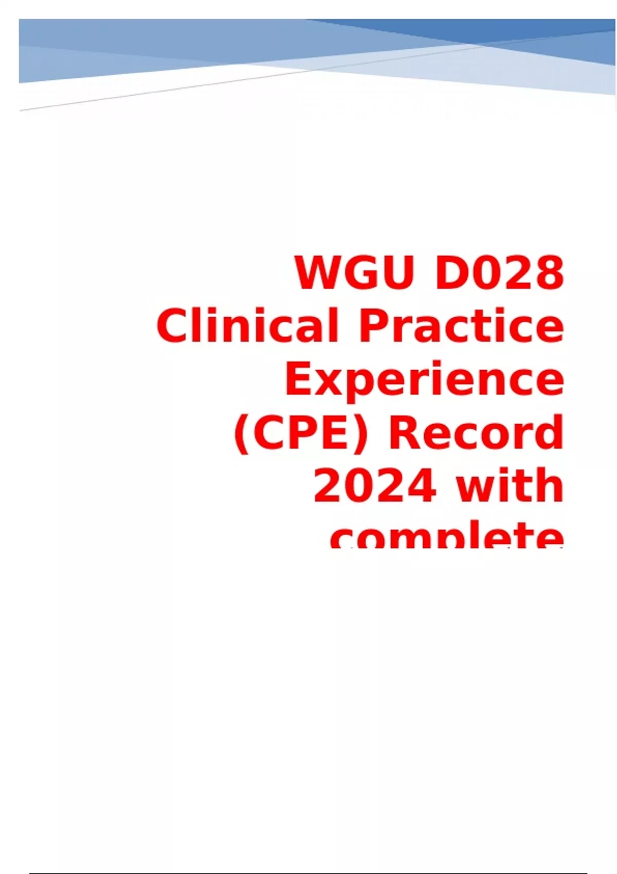 WGU D028 Clinical Practice Experience (CPE) Record 2024 with complete solution