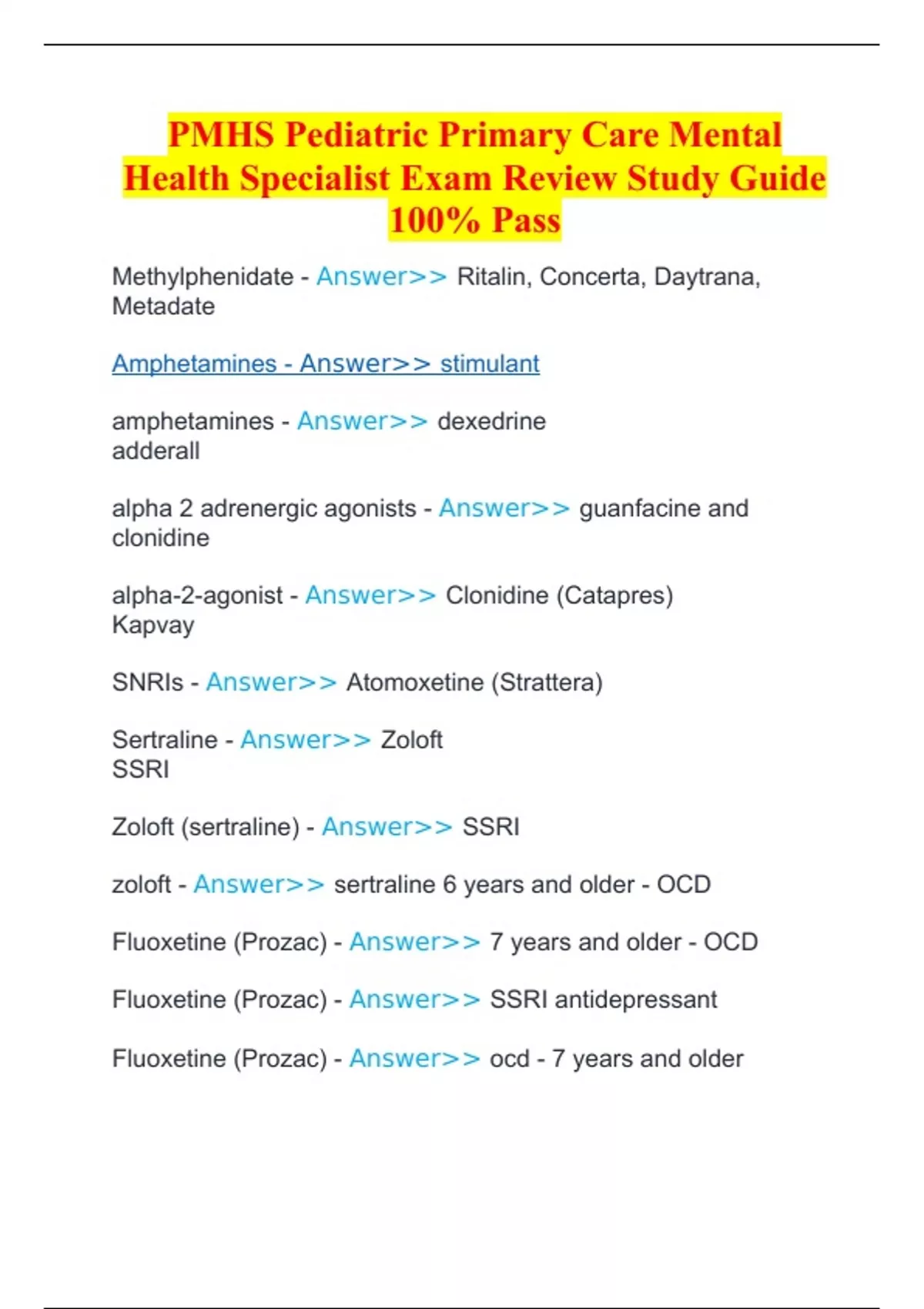 PMHS Pediatric Primary Care Mental Health Specialist Exam Review Study Guide 100% Pass