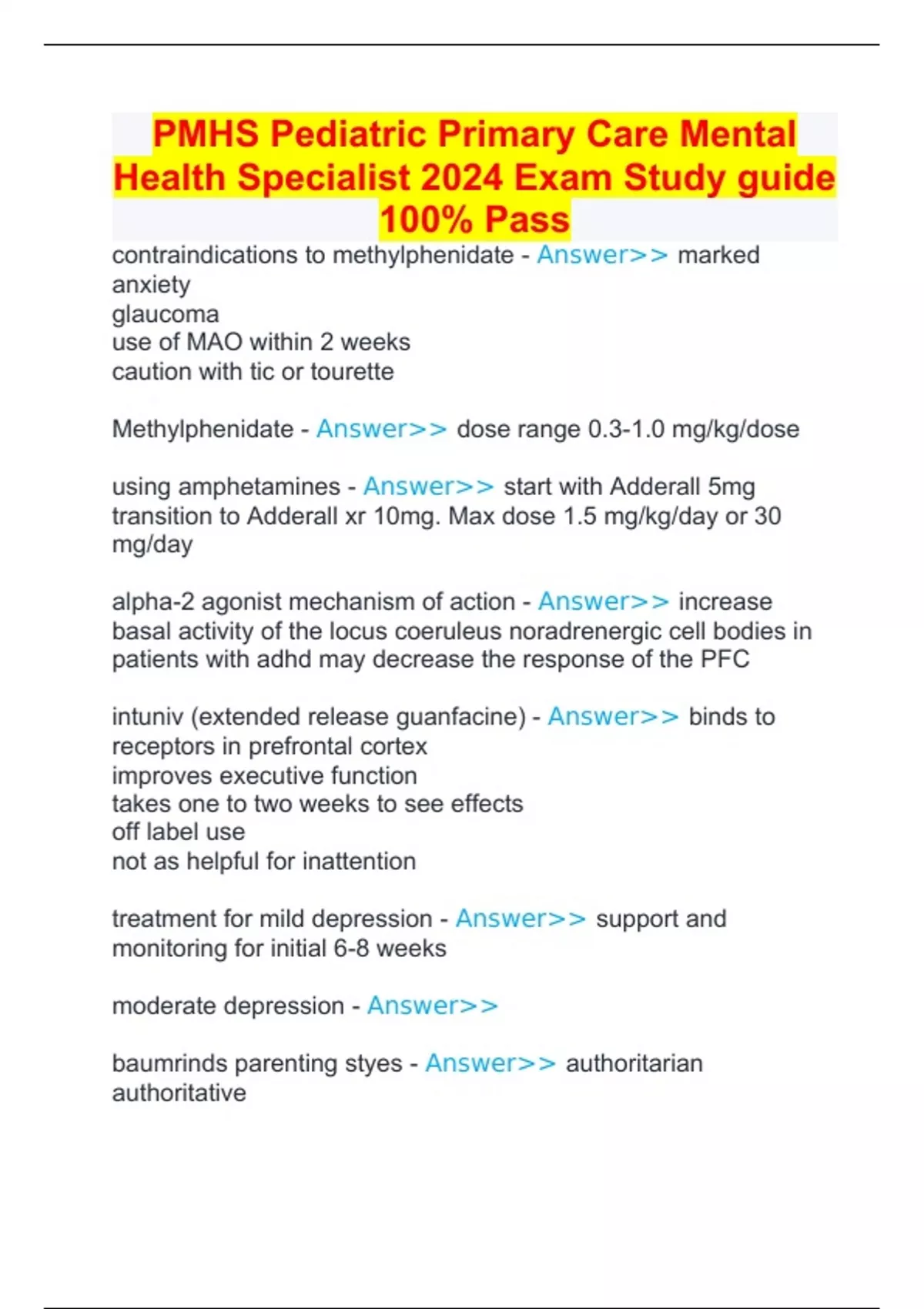 PMHS Pediatric Primary Care Mental Health Specialist 2024 Exam Study guide 100% Pass