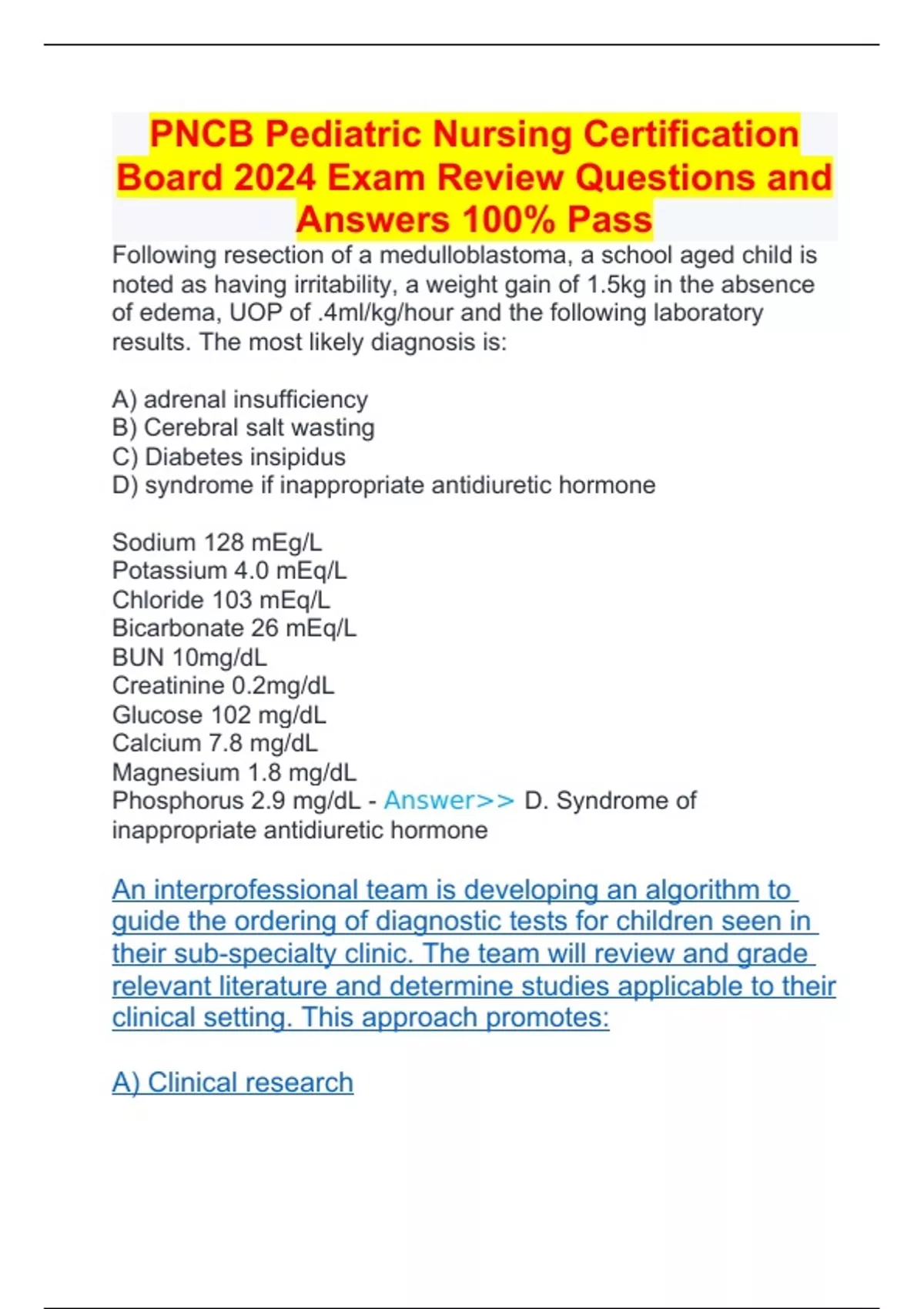 PNCB Pediatric Nursing Certification Board 2024 Exam Review Questions and Answers 100% Pass